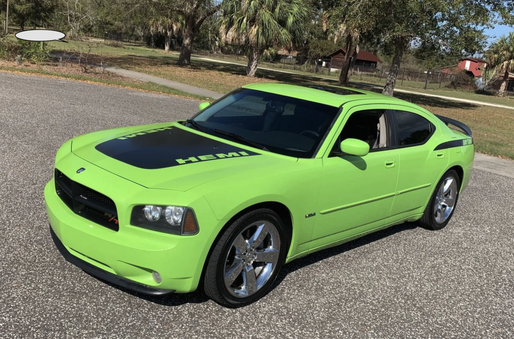 It didn’t have a roof-high wing, but Dodge’s homage to its iconic NASCAR warrior almost 3-decades earlier was a looker. With a moderate altitude black rear wing, blacked-out rear, mostly black hood with “HEMI” cut out on each side, rear ‘70 ‘Cuda-like black stripes, and 20-inch chrome five-split-spoke wheels, this charger was not subtle. That is even before you consider the roster of Dodge’s famous amusingly named colors, such as Sub Lime Green, Plumb Crazy Purple, and Top Banana, plus a few new ones, such as Go ManGo!, Stone White, and HEMI Orange.