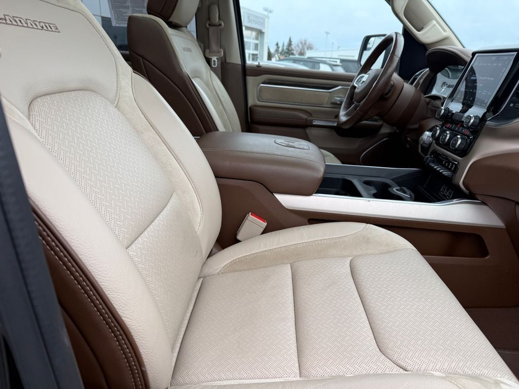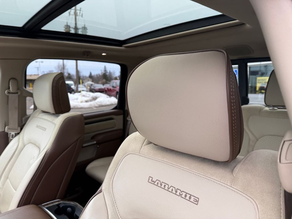 Beyond its impressive powertrain, this Laramie model is packed with premium features that elevate the driving experience. The dual-pane panoramic sunroof floods the cabin with natural light, while the Uconnect 4C navigation system keeps you connected and on track. Leather-trimmed bucket seats provide all-day comfort, and the wheel-to-wheel side steps make it easy to get in and out.
