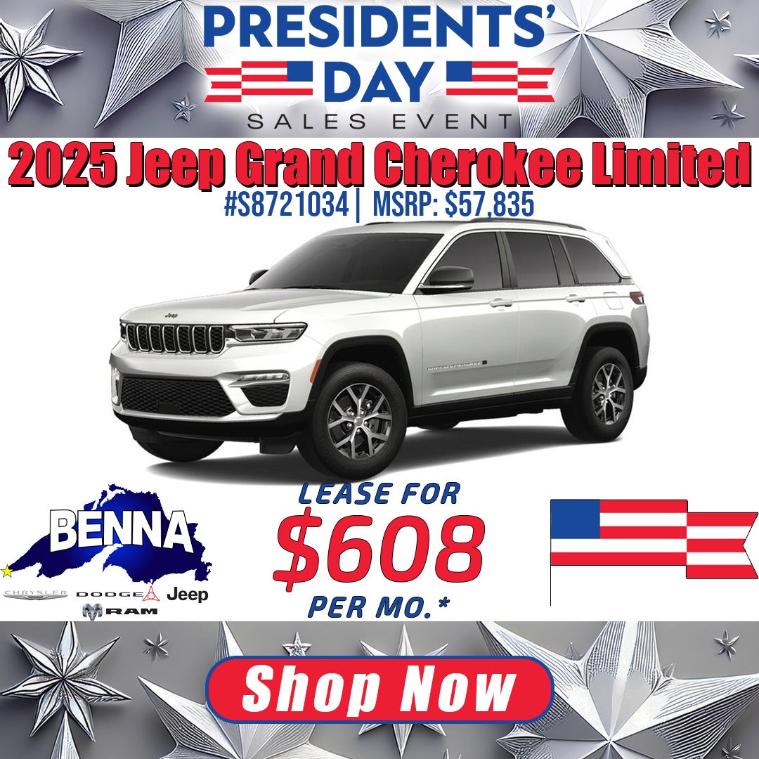 *Stock #S8721034. MSRP: $57,835. MSRP may not represent actual sales price. 39 Month lease, 10,000 miles per year, $4,999 due at lease signing or trade equity, plus $1,287 Benna Dealer Discount + $2,000 National Select Inventory Bonus Cash. To all qualified lessees plus tax, title, license, and $499 service fee and $595 acquisition fee. Must lease with Stellantis Financial Services. For well-qualified buyers. Not all buyers will qualify. On approved credit. Vehicle subject to prior sale. See dealer for details. Offer ends 3/2/2026.