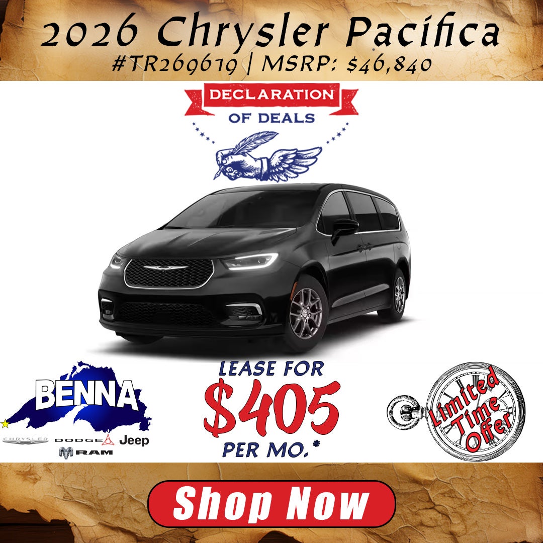 *Stock #TR269619. MSRP: $46,840. MSRP may not represent actual sales price. 36 Month lease, 10,000 miles per year, $3,999 due at lease signing or trade equity, plus $463 Benna Dealer Discount + $2,000 National Lease Cash + $1,000 Midwest BC Lease Bonus Cash. To all qualified lessees plus tax, title, license, and $499 service fee and $595 acquisition fee. Must lease with Stellantis Financial Services. For well-qualified buyers. Not all buyers will qualify. On approved credit. Vehicle subject to prior sale. See dealer for details. Offer ends 4/30/2026.